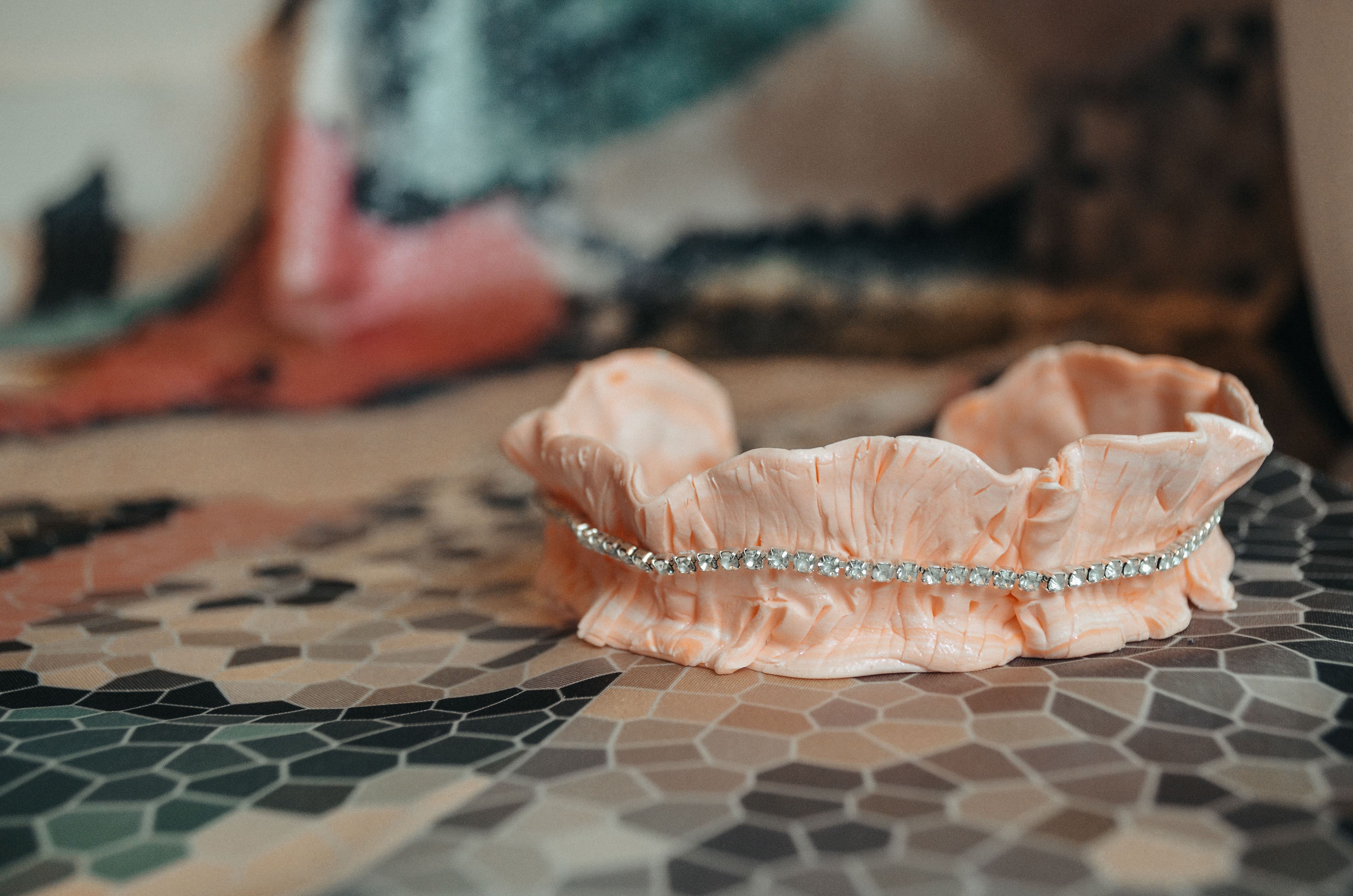 Hergestellt habe ich die Accessoires aus Fimo(Knetmasse), Epoxidharz, Strass und Acrylglas.Durch die unterschiedlichen Strukturen und Verarbeitungsmöglichkeiten konnte ich unterschiedlicheFormen, Farben und Techniken herstellen, sodass man ein interessantes Zusammenspiel entwickelnkann.